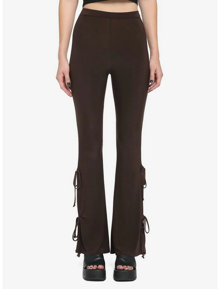 Keep it comfy, yet fashion forward. These stylish, brown flared leggings feature side tie detailing for an extra bit of sass.