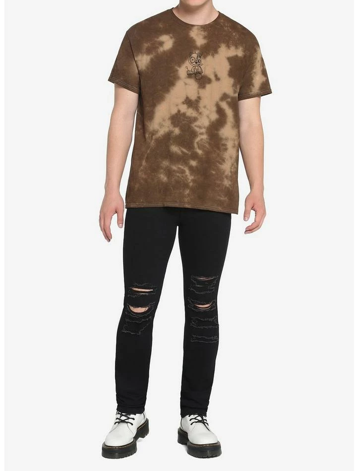 Keep your wardrobe fresh and trendy with this bear-y sweet tee! Featuring a brown tie-dye design all over, and the central image depicts a stitched up teddy bear embroidered in a simple outline design. Comes with contrast stitching at the hems.