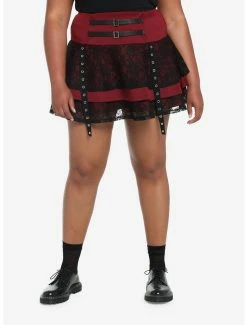 Pull up to the function in this tiered skirt full of edgy details. It’s decorated with black lace tiered, grommet taping and faux buckles on the front waist.
