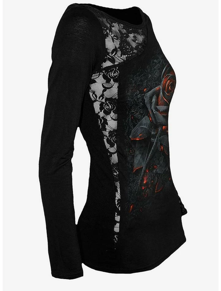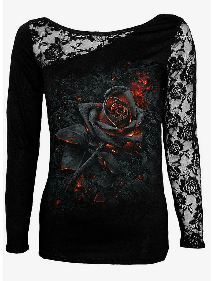 Every rose has its thorn?from ember to ashes. This lace one shoulder top is made of mainly viscose jersey using skin friendly, Azo-free, reactive dyes.
