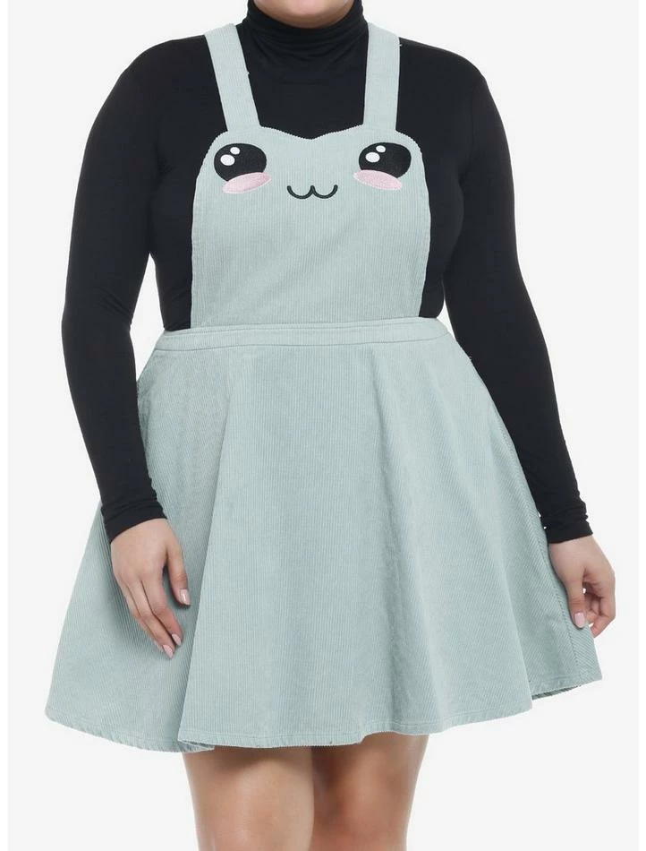 Need a new skirtall? We froggin’ got you! This corduroy number is embroidered with a chibi frog’s smiling face on the front. It also has pockets and adjustable straps.
