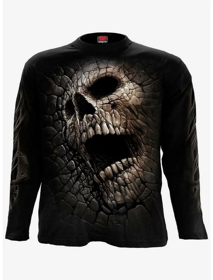 A primal scream echoes from the depths of the earth as shards of splintering rock metamorphosise into the shocking form of an open-mouthed skull. This is truly ancient magic, capable of twisting the very elements to carry out one?s bidding. This longsleeve t-shirt is made of top quality cotton jersey using skin friendly, Azo-free, reactive dyes.