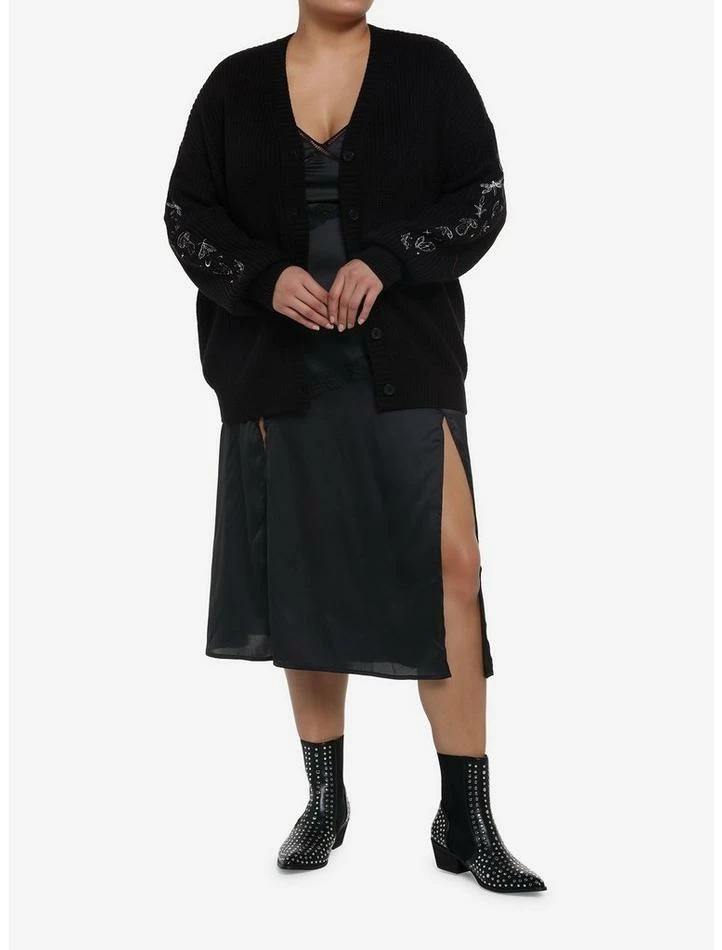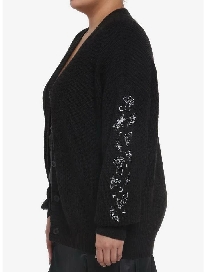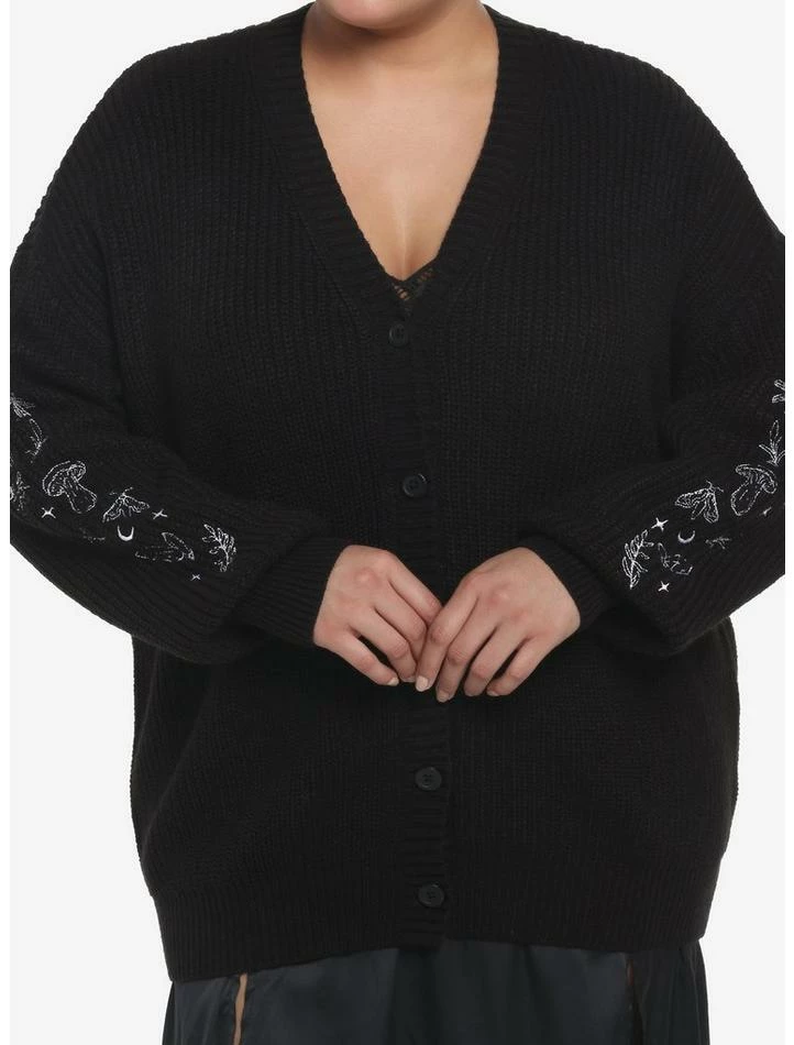 Crystals, foliage, insects and mushrooms are an entire vibe. If they describe your likes and loves, this oversized cardi is perfect for you. Its sleeves are embroidered with your fave dark cottagecore symbols.
