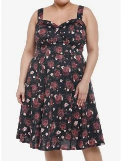 Show off your dark side in this retro-inspired dress with a sweetheart neckline, adjustable straps and a gorgeous allover print of roses in dark colors.