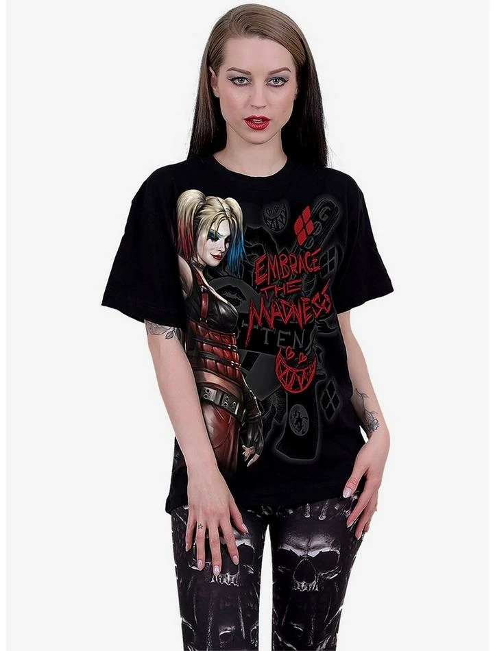 Harley Quinn is in love with her Puddin, the maniacal Joker. You too can embrace the madness with this design inspired by the inmates at Arkham Asylum. This T-Shirt is made of top quality cotton jersey using skin friendly, Azo-free, reactive dyes.