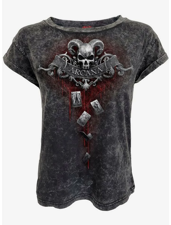 Brand new ๐ Death Tarot Acid Wash Turnup Sleeve T-Shirt โค๏ธ