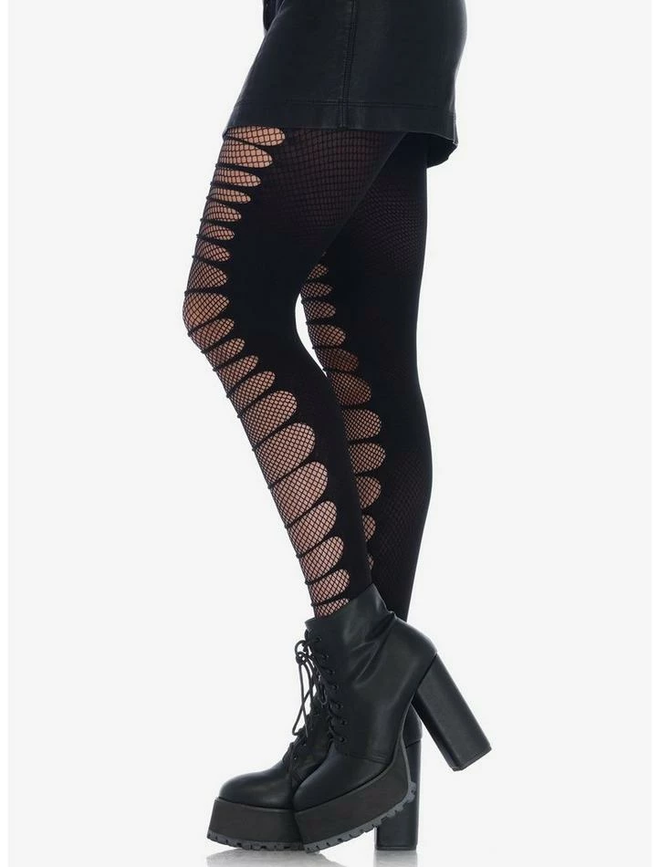 Bring some edge to your regular tights with this pair of distressed fishnet tights. Featuring a sturdy double-layer shredded spandex with fishnet tights underneath, all in one!