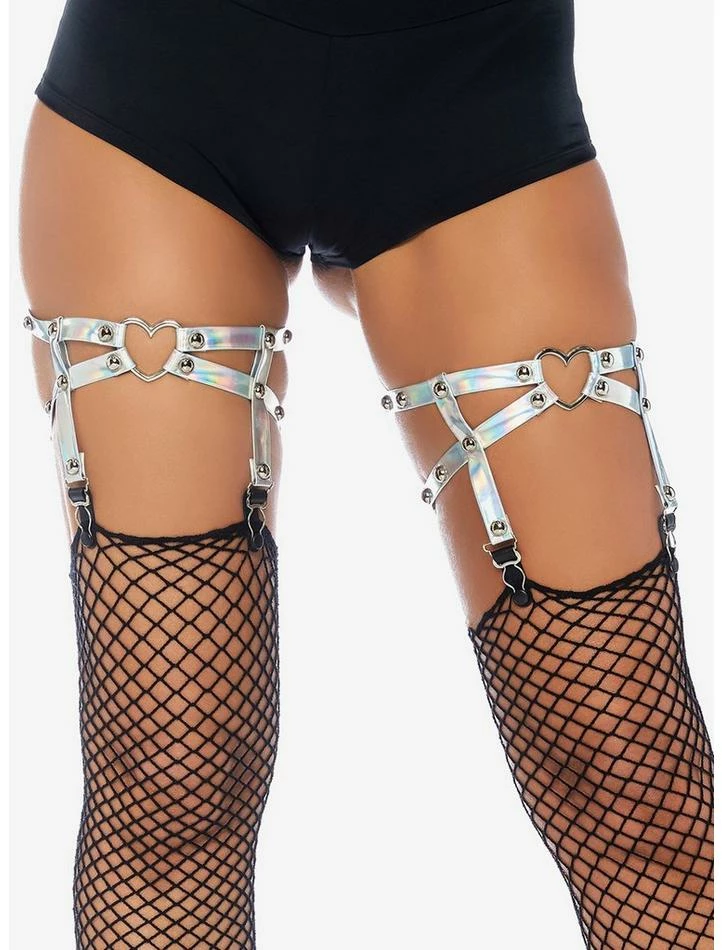 Want to take your thigh-high socks look to the next level? Add these dual strap stud garters with metal heart detailing. Non-slip and plenty of stretch.