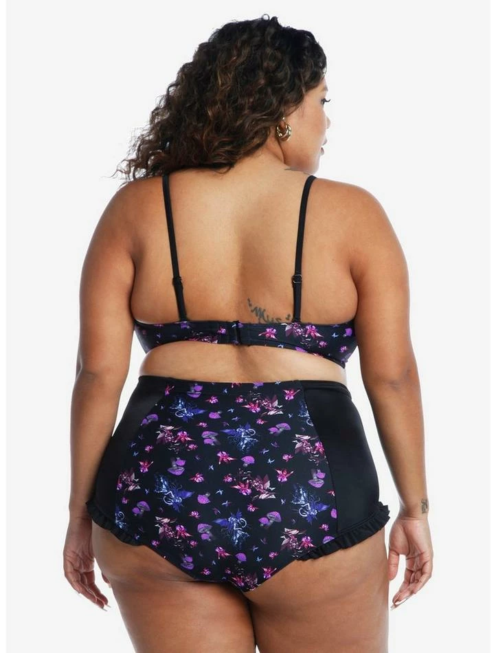 Add some magic to your fun in the sun with this purple swim top from Fairies by Trick. Featuring an allover print of fairies, mushrooms and flowers. It has a cinched neckline and tie-front and keyhole detailing at the chest. Comes with removable padding. Pair with the matching bottoms to complete your look!