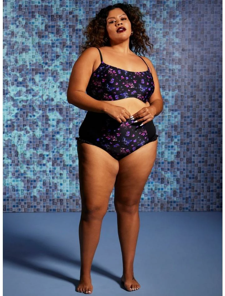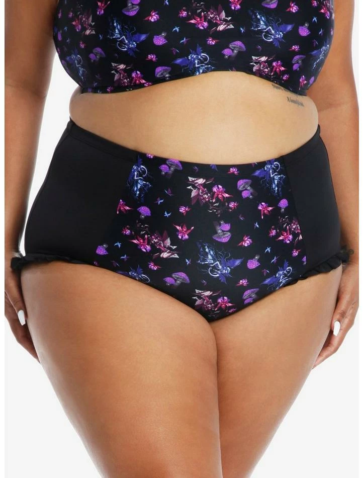 Add some magic to your fun in the sun with these purple high-waisted swim bottoms from Fairies by Trick! Featuring panels with fairies, mushrooms and flowers and adorable ruffled trimming. Pair with the matching top to complete your look!