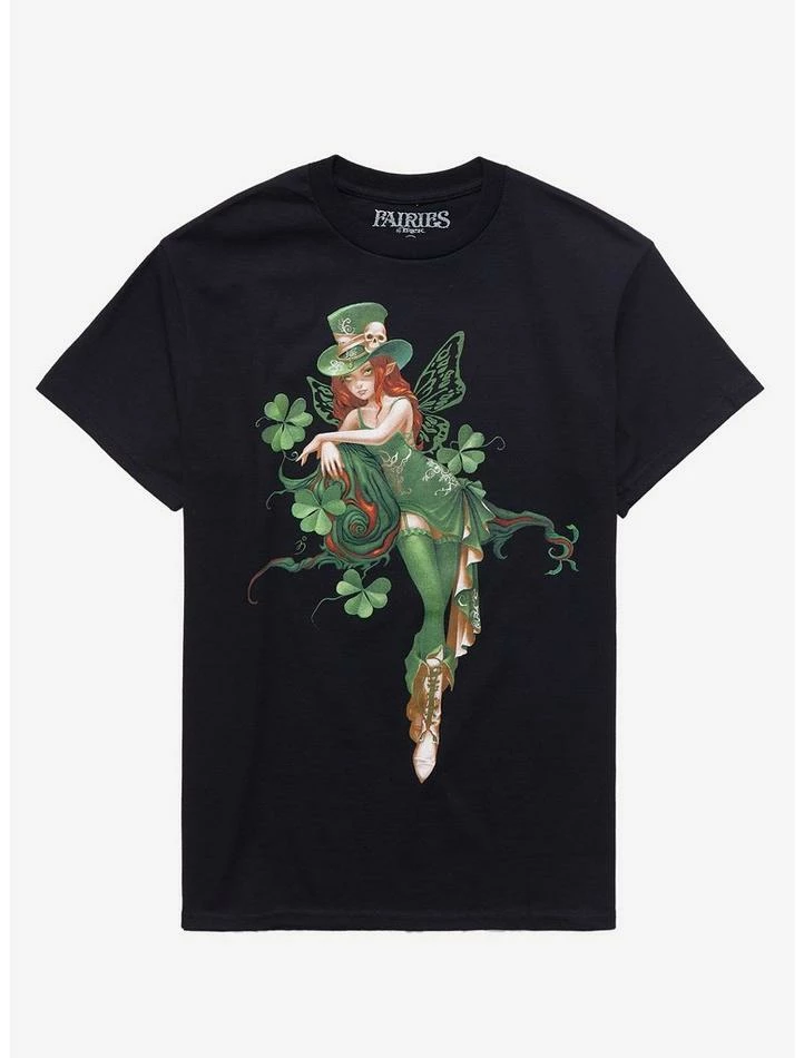 Β In need of some luck? This Fairies by Trick tee features a beautiful fairy, dressed in green, wearing a green top hat with a skull on it. She’s leaning on vines with four-leaf clovers. Maybe if you ask nicely, she’ll spare you some of her luck!