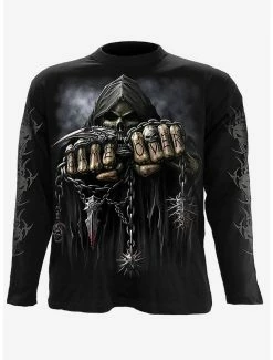 You know it is Game Over if you see this skeleton Reaper with his carved knuckles. This longsleeve t-shirt is made of top quality cotton jersey using skin friendly, Azo-free, reactive dyes.
