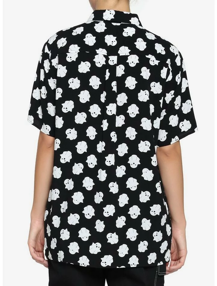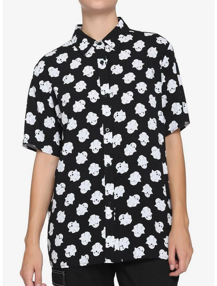 Still haunted by the last time you passed up a piece this cute? Don’t let history repeat itself! This precious woven collared button-up features an allover pattern of ghosts. We’re sure you’ll look boo-tiful in it!