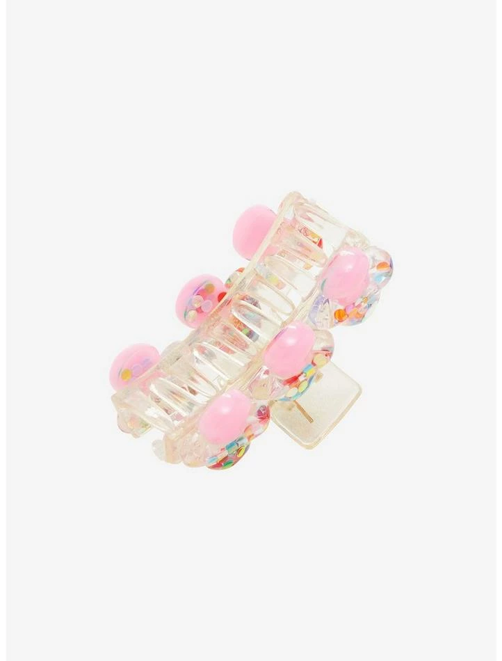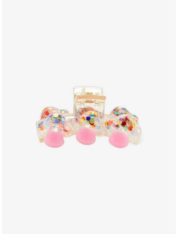 Make some shroom in your hair accessories ASAP! This fun claw hair clip is ready to keep your ‘do in place all day. Features confetti glitter-filled clear mushrooms on both sides with bubblegum pink stems.