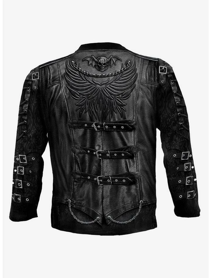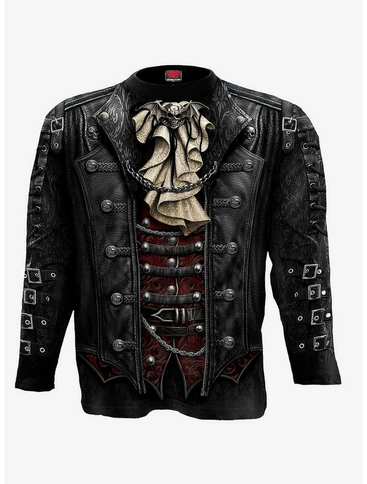 Realistic leather, laces and buckles with a metallic winged skull and cravat. This is Heavy Metal with a twist of Victorian elegance, and every bit the gothic Spiral masterpiece. Allover This longsleeve t-shirt is made of top quality cotton, Interlock using skin friendly, Azo-free, reactive dyes.