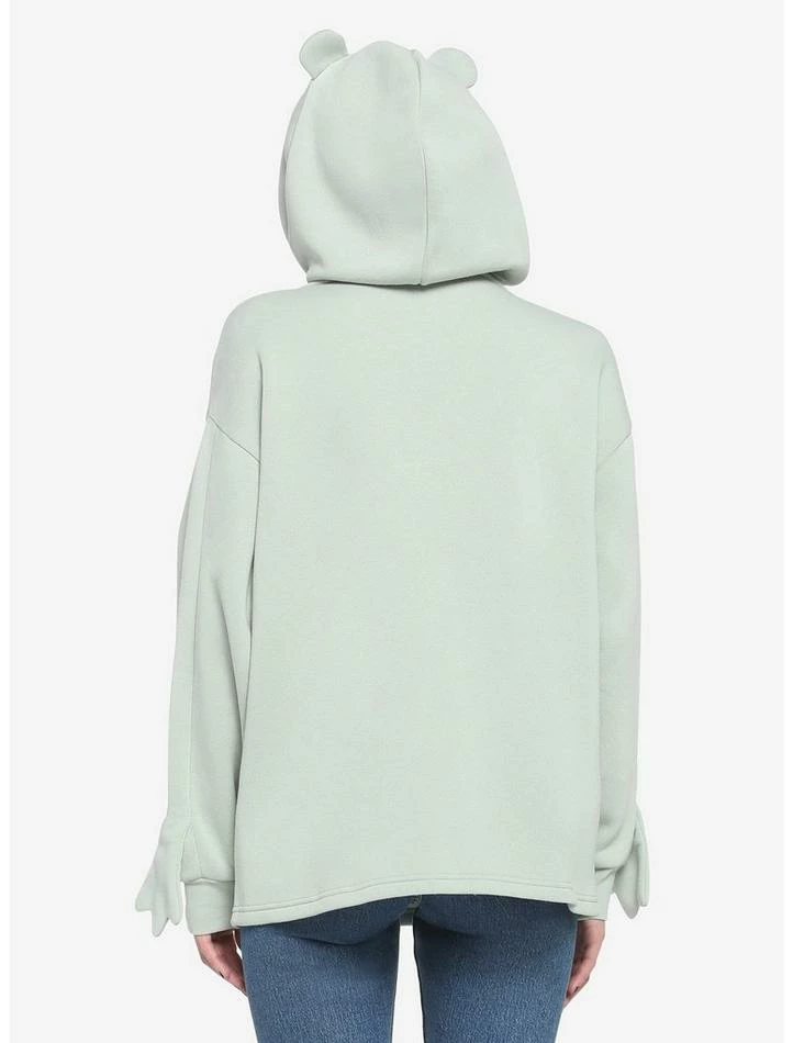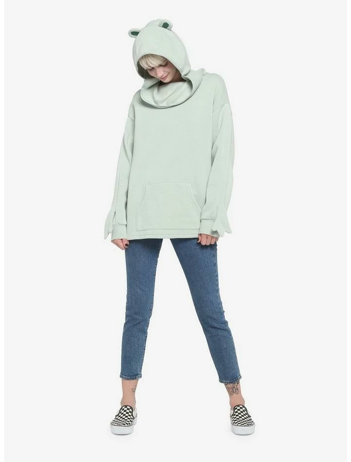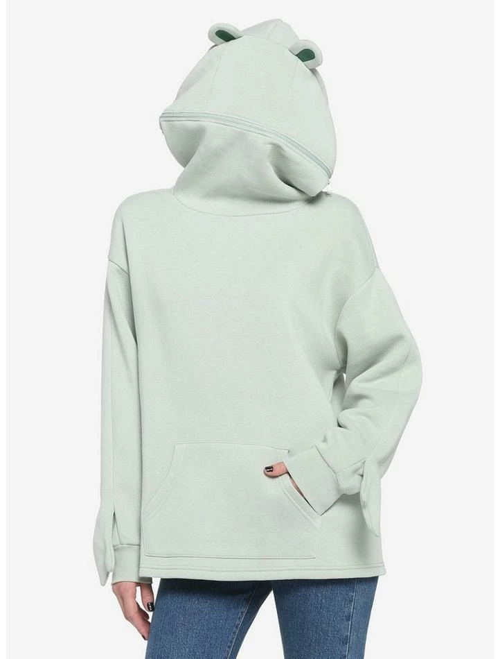 Take your pond-ness for frogs to another level with this ribbit-ing cosplay hoodie! This oversized hoodie features a kangaroo pocket and adorable 3D frog arm detailing at the sleeves. The hood comes with 3D eyes at the top and a zipper closure that resembles a frog’s mouth when open. Best hop to it!