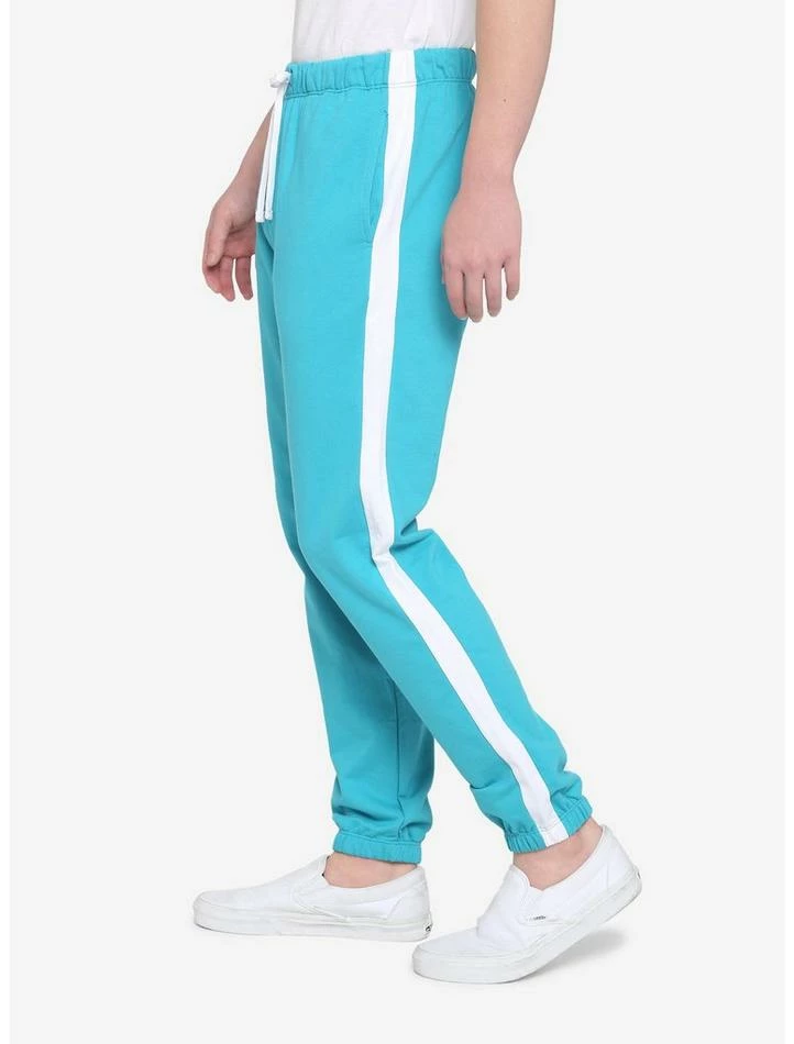 Goin’ for a run? Work out in style in these green track suit sweatpants. Featuring white stripes down the sides, elasticated ankles and an elasticated waistband with contrast drawstring. Pair with the matching jacket to complete your look!