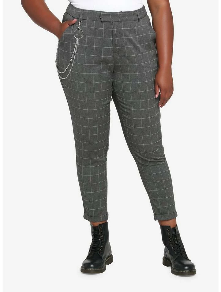 Add some dimension to your look by rocking some prints! These grey pants feature a grid print and come with a detachable, silver-tone double chain with O-ring detailing. Complete with a half elasticated waistband and cuffed ankles.