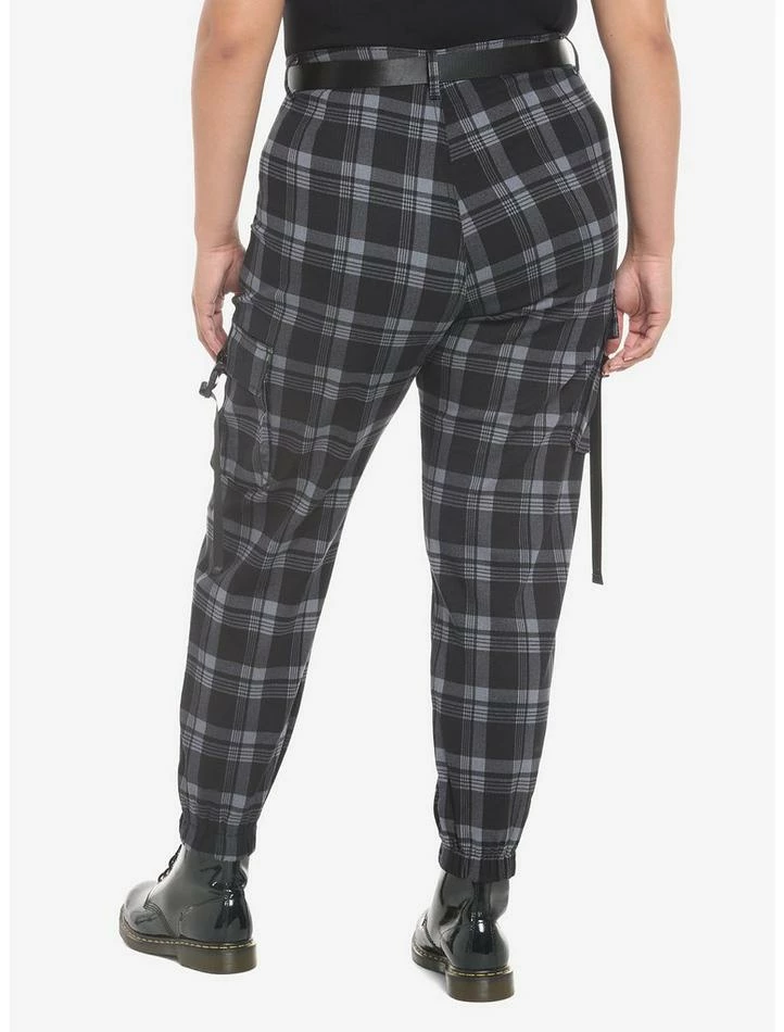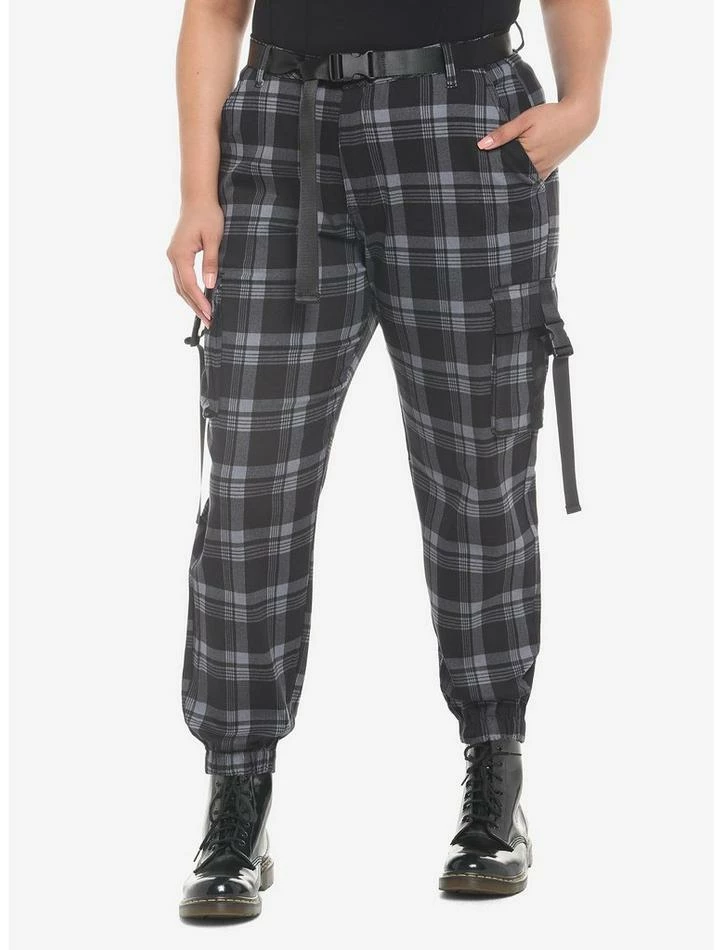 Need pants that subtle yet still make a statement? These grey plaid jogger pants check both boxes, and have added flair thanks to buckle detailing on the cargo pockets, and a removable buckle belt.