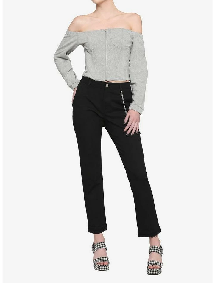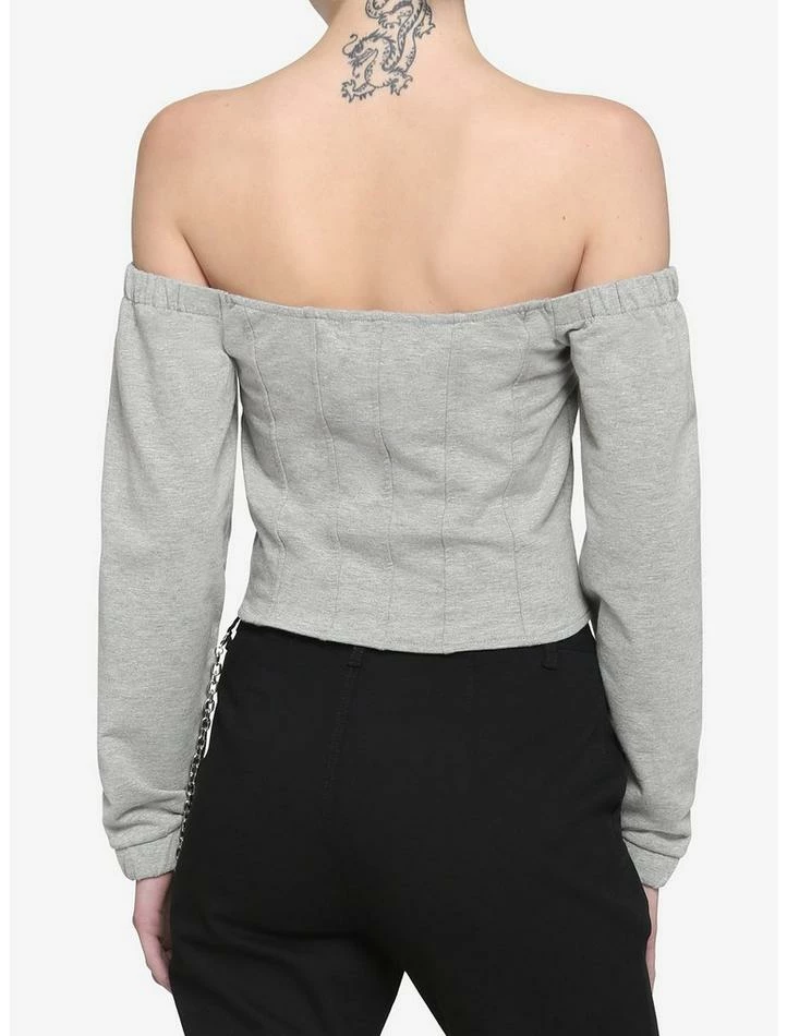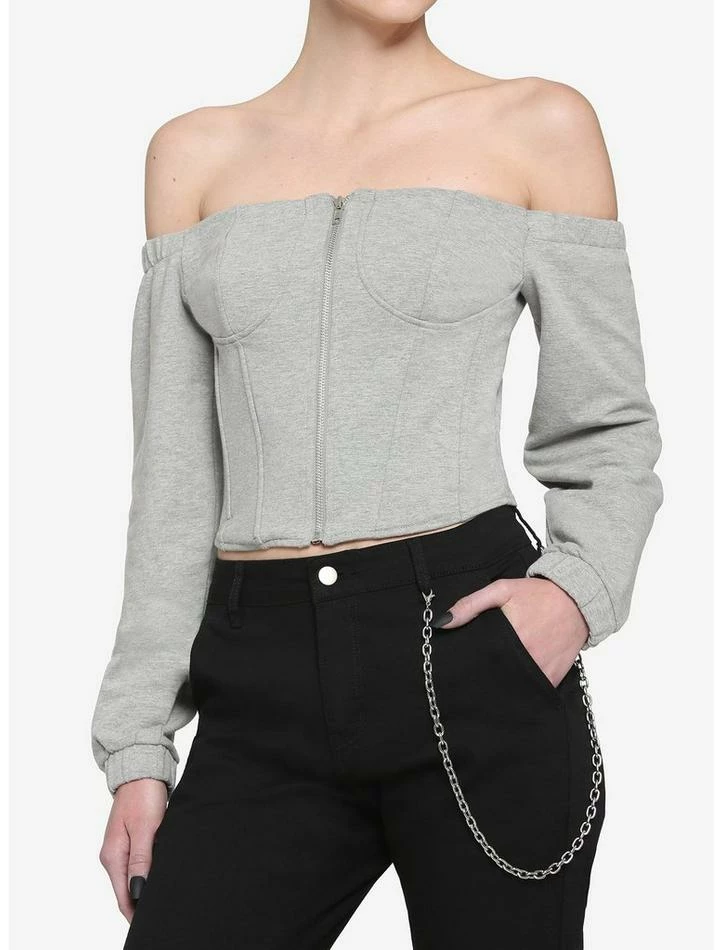 This top is for when the weather can’t make up its mind. With cozy long-sleeves and a sleek corset bodice, it’s like having the best of both worlds. Made of sweatshirt material, it also has a zipper front, elastic wrists and elastic shoulder seams.