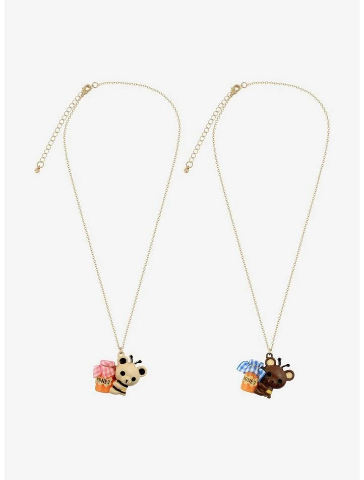 Rock these matching necklaces with your honey or your bestie. You’ll be the sweetest duo, guaranteed! This set includes two gold tone necklaces with bears holding a honey jar.
