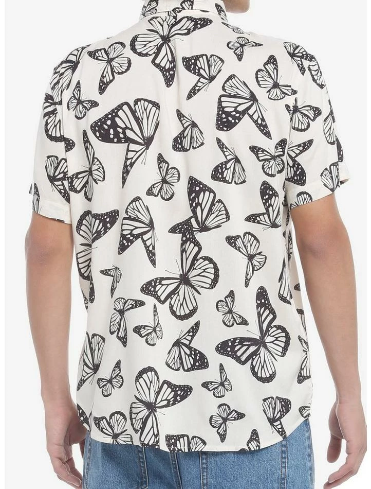 Wardrobe in need of a metamorphosis? Let your look soar to new heights with this ivory button-up, featuring an allover pattern of butterflies.