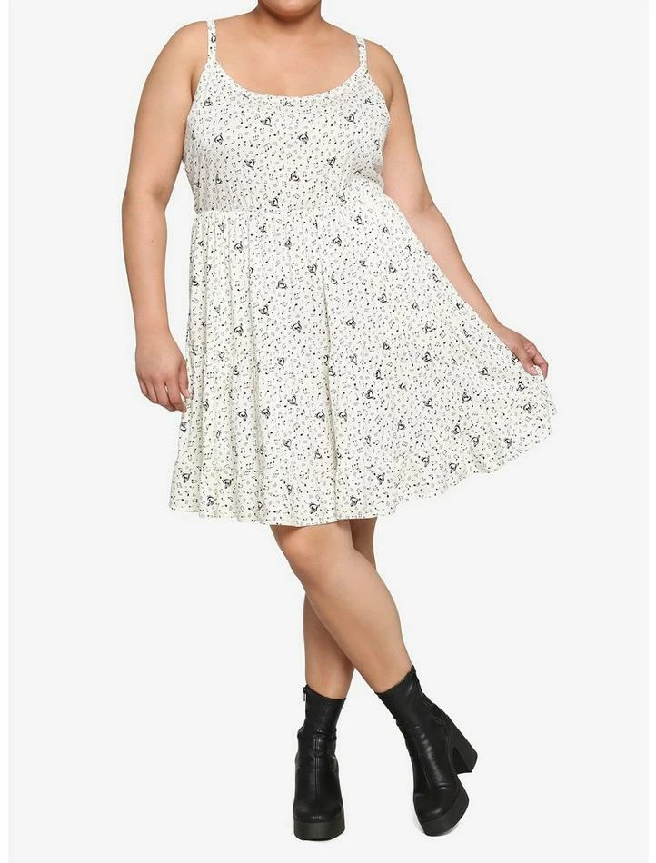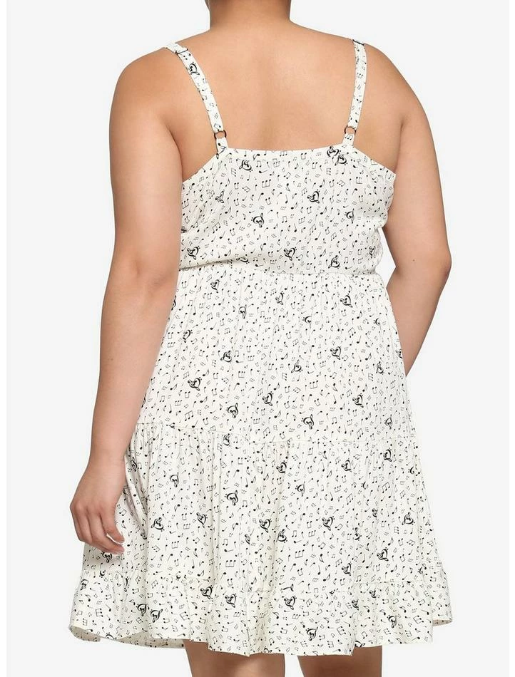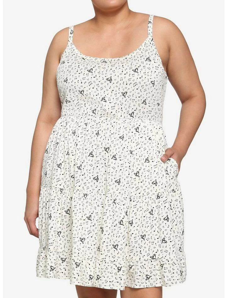 Keep your wardrobe lookin’ sharp this summer! Stay cool in this ivory dress, featuring an allover print of musical notes. It comes with adjustable spaghetti straps, a tiered skirt and side seam pockets. Complete with an elasticated waistband for comfort.