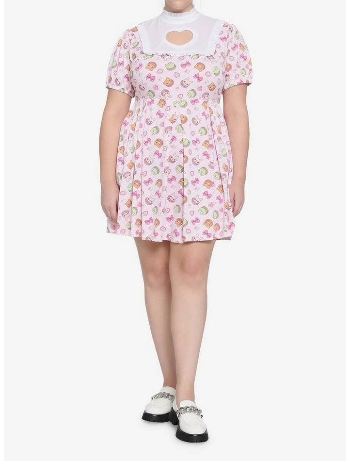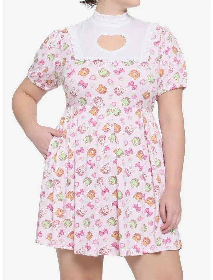 Nothing says “kawaii” like pink and macarons! This soft and stretchy pleated dress features an allover print of animal shaped macarons, bows and fruit. Heart shape cutout on bib, ruffle trimming on neck with back hook-and-eye closure and pockets. Back zipper closure.