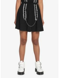 Looking for an edgy warm weather ‘fit? Try this skirt, which features lace-trim garter detailing with grommets, and a detachable chain across the front of the skirt.