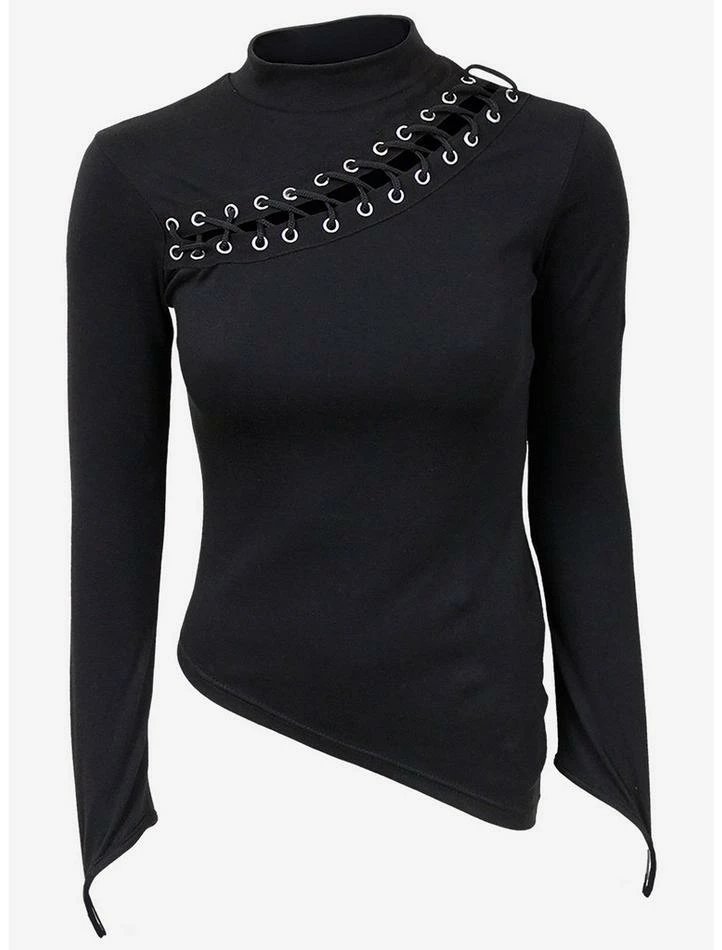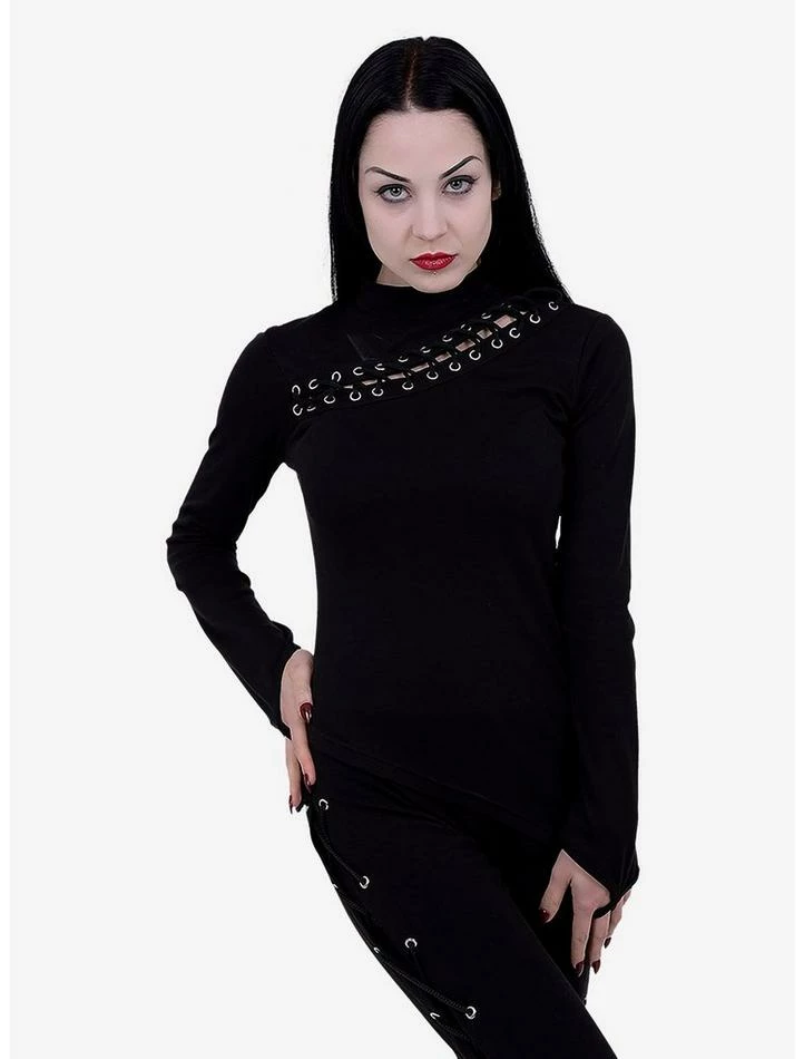 Fashion with a pinch of Goth. This slant lace up longsleeve top is made of top quality interlock using skin friendly, Azo-free, reactive dyes.