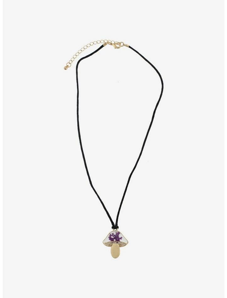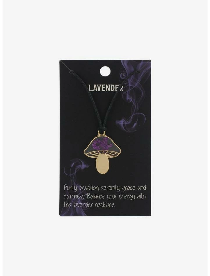 Have too mushroom in your jewelry box? Fill it with this cord necklace, which features a mushroom pendant with lavender flowers stamped in it.