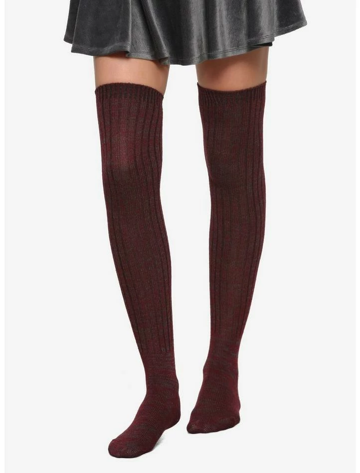Over-the-knee socks are perfect for those days when it’s too hot for pants, but too cold for tights. Wear these maroon & grey marled over-the-knee socks with skirts, dresses and shorts.