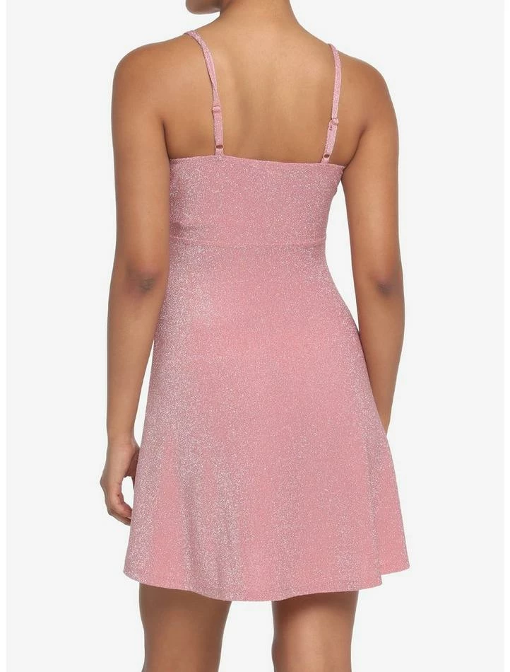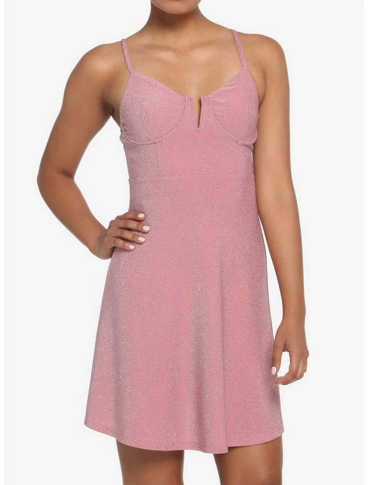 Dazzle everyone in a cute, new dress! This mauve one features silver glitter to make you sparkle! Comes with a flirty bustier-style bust with underwiring for extra support. Complete with adjustable straps.