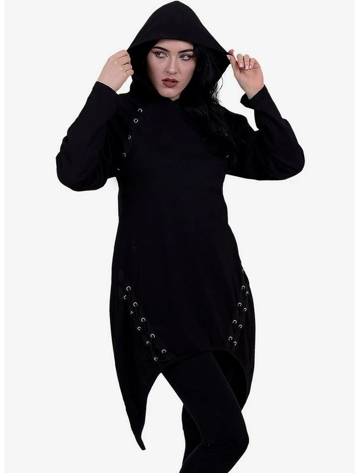 Promo ✔️ Metal Streetwear Lace Up Asymmetrical Hoodie ✔️