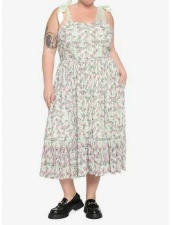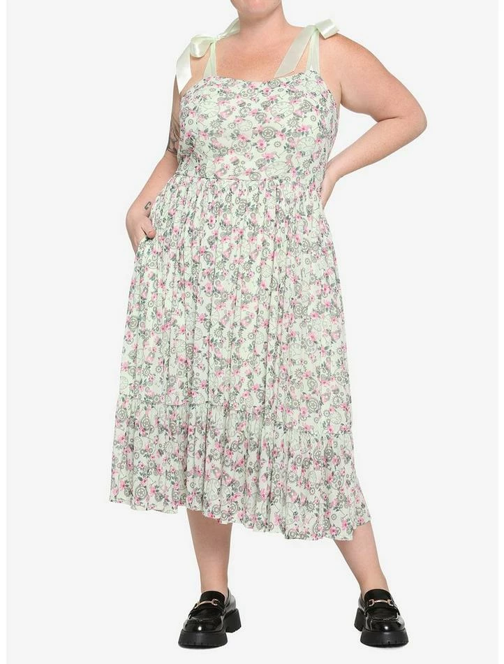Hot Sale โญ Mint Floral Clocks & Gears Midi ๐ Dress Plus Size ๐