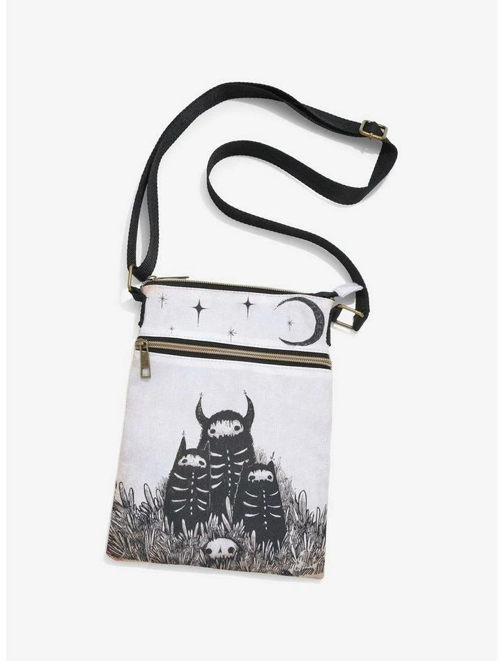 Going on a nighttime stroll through the forest? Keep your essentials safe in this mystical passport crossbody bag, featuring a trio of mysterious creatures standing under the moon and stars. Comes with an adjustable crossbody strap, front zipper pocket and top zipper closure.