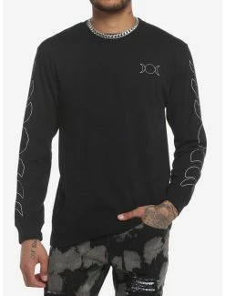 Add something celestial to your wardrobe with this simple long-sleeve that’s out of this world! Featuring a minimalistic design of moon phases down the sleeves in sleek white outlines, plus a moon icon on the chest.