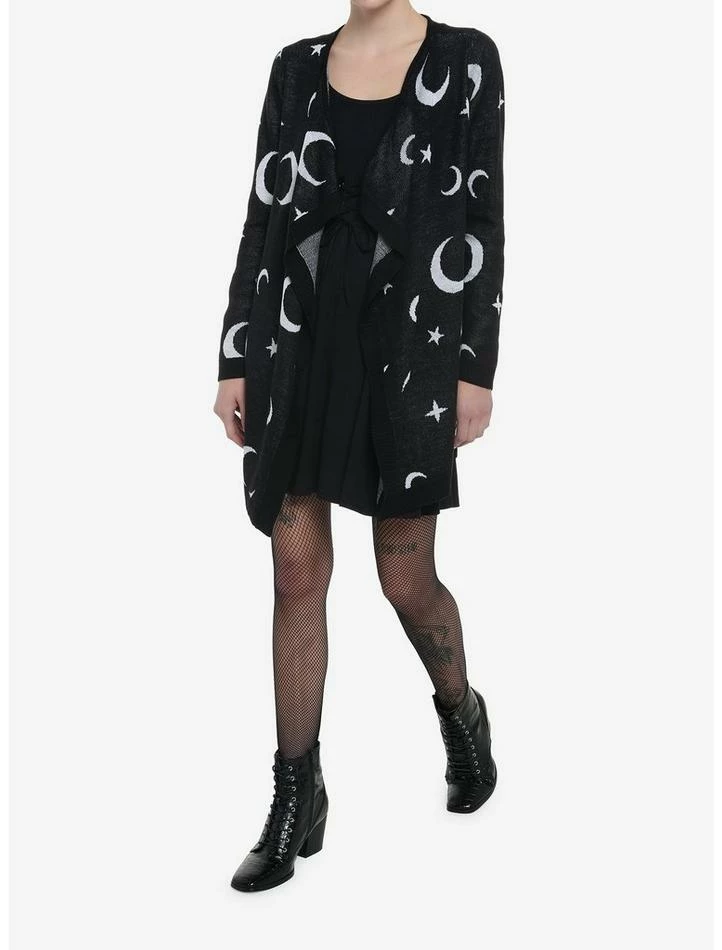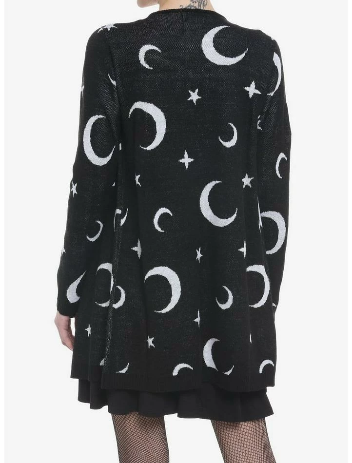 Need a fun and comfy basic? This knit open cardigan has crescent moons and stars all over it.