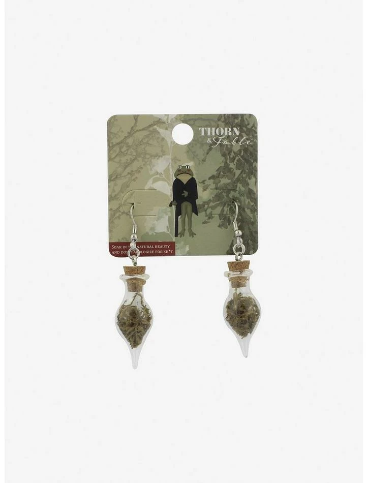 Rep your love for nature with some supercute earrings! This unique pair features moss-filled capsules, topped off with cork closures.