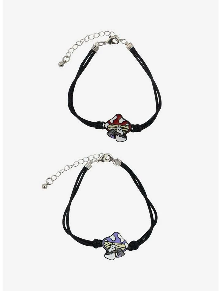 Don’t mess with these mushrooms. This set includes two black cord bracelets with mushrooms holding axes pendants.Β