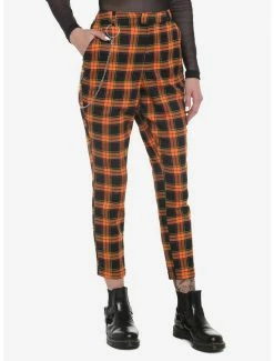 Get ready for fall with a pair of statement pants! These orange plaid pants feature hip pockets, a half elasticated waistband and cuffed ankles. Comes with a removable side chain attached to O-ring detailing.