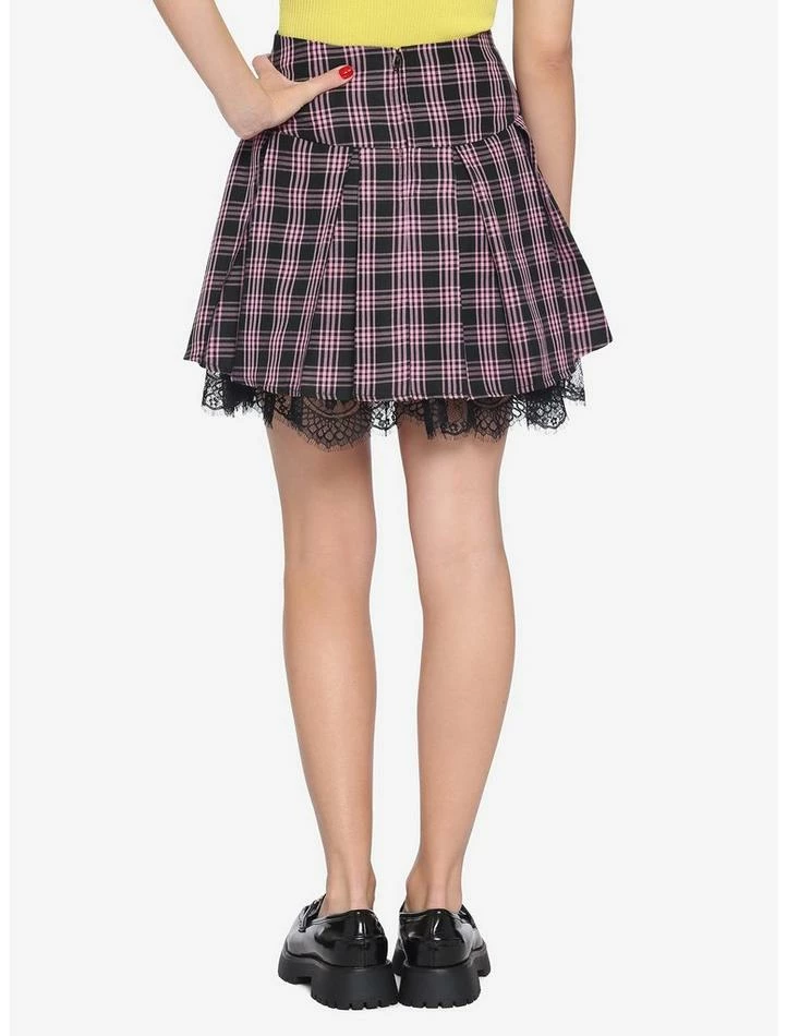 Add some extra swish to your style! This layered pink and black skirt comes equipped with a lace-trimmed inner lining, adding some extra dimension to your look. Features double lace-up front and back zipper.