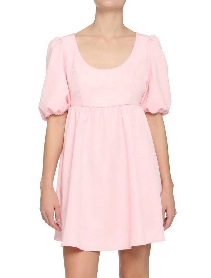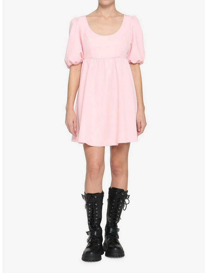 Add a pop of color to your wardrobe with this adorable pink babydoll dress. Featuring double ties on the back, puff sleeves and an elasticated waist. Style with some Mary Janes for a sweeter look, or combat boots for some edge!