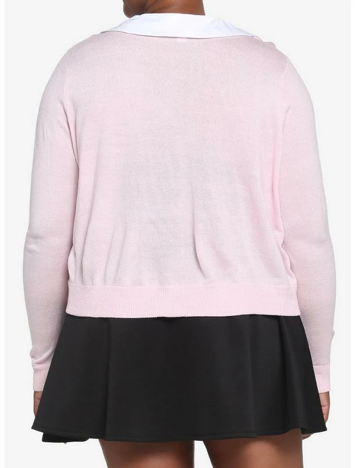 Show up to class in style! Keep your kawaii school girl ‘fit on point with this cozy, pink cardigan! It has a cropped fit and features a white Peter Pan collar, plus heart-shaped buttons down the front.