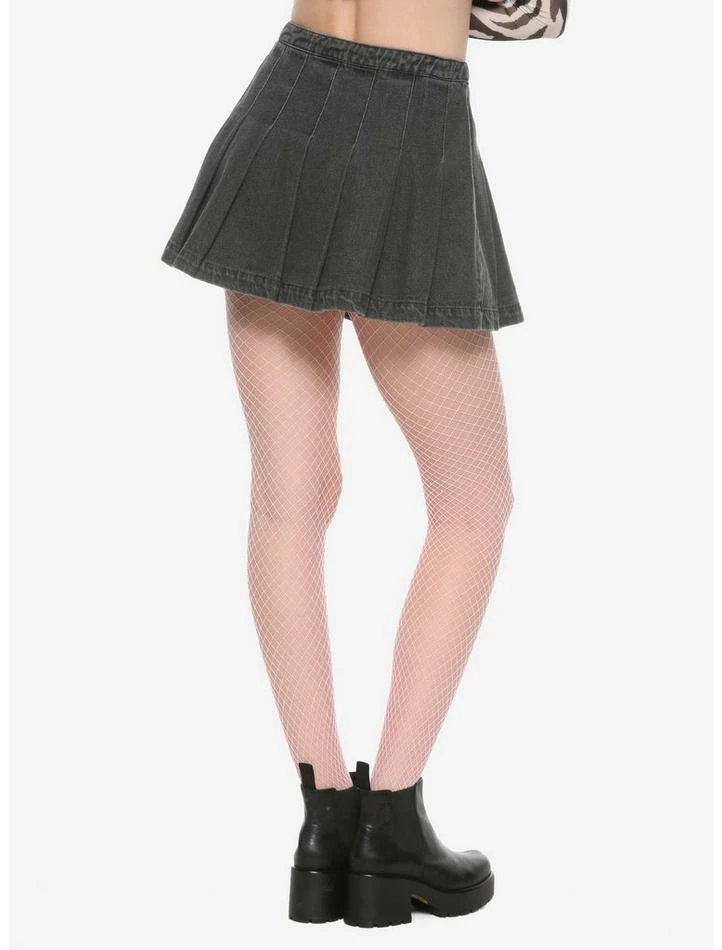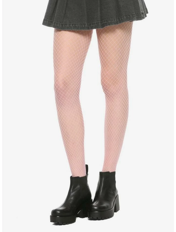 Add some pastel to your fishnet collection with these light pink tights. Layer over solid color tights for a two-tone look, or wear alone for a tough but pretty look.