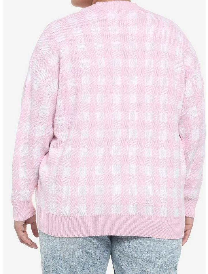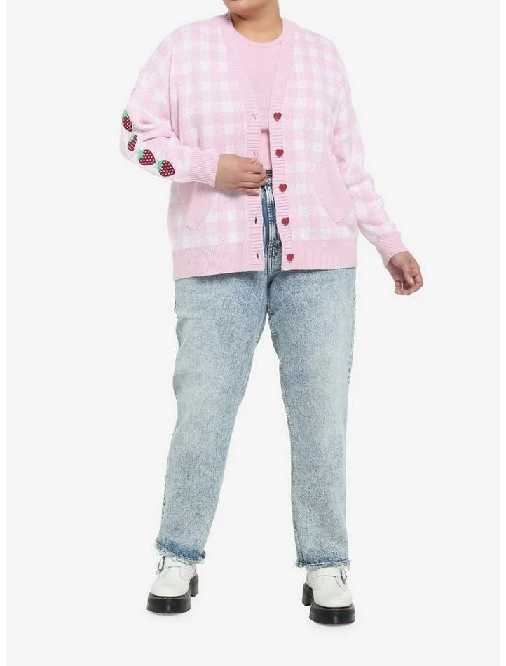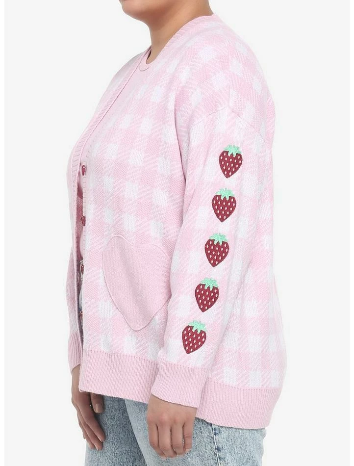 Best Sale ๐ Pink Gingham Strawberry Heart Oversized ๐ง Girls Cardigan Plus Size ๐