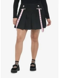 Elevate your skirt game with this suspender pleated skirt! The pink removable grommet suspender straps adds a pop of color, with matching front zipper pockets on the wide yoke. Comes with box pleats and back zipper closure.