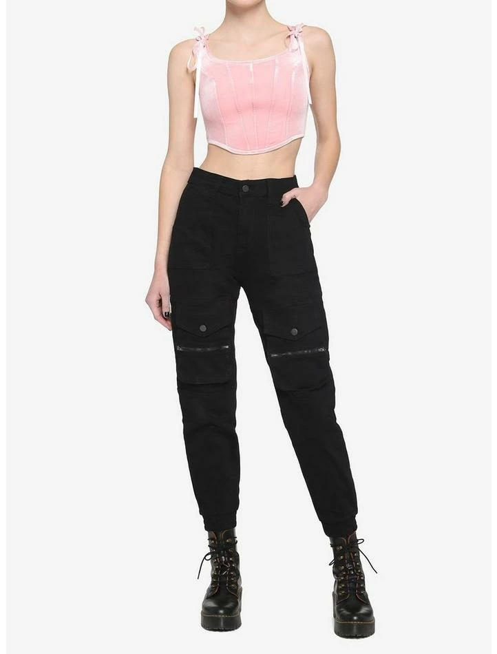 Feelin’ like Marie Antoinette? Bring those royal vibes to your next tea party in this pink corset! Featuring velvet fabrication, fit for any queen. Complete with delicate satin ribbons on the shoulders and back lace-up detailing.
