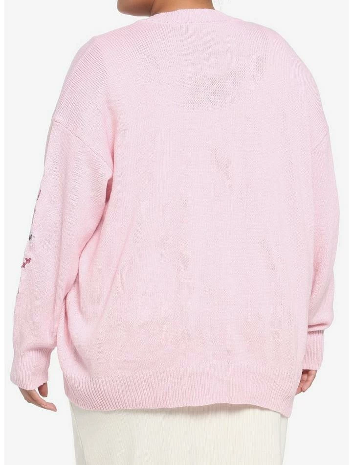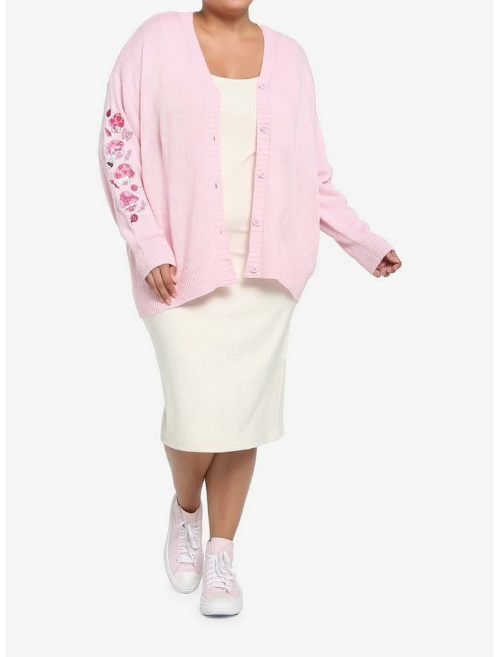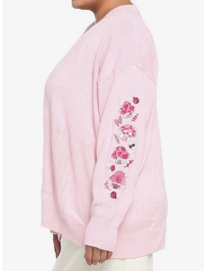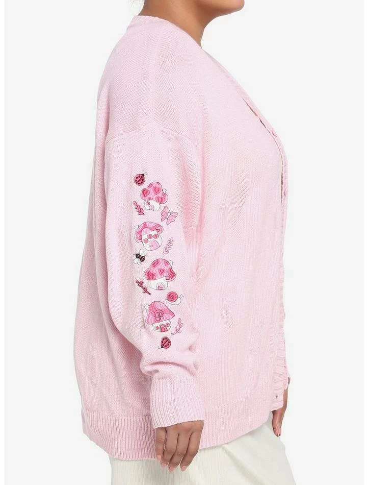 Loving the cottagecore aesthetic, but not a fan of neutrals? Then this pastel pink cardigan is just what you’ve been looking for! It features pink embroidered mushroom houses down the sleeves, plus forest critters and leaves. Complete with adorable, heart-shaped buttons down the front.