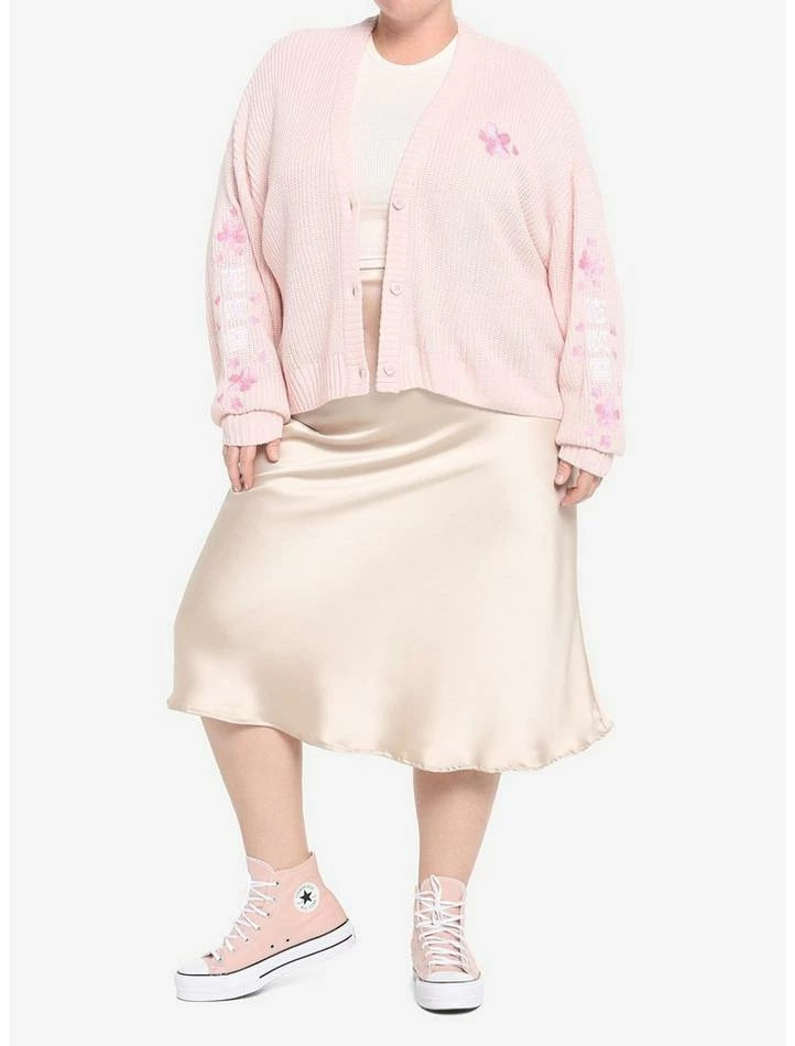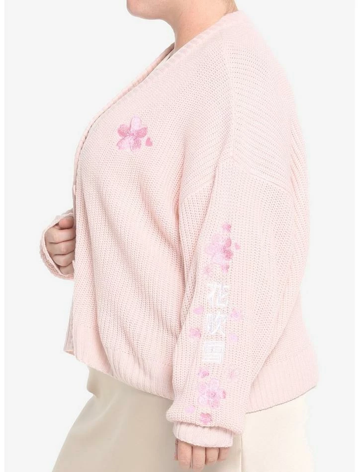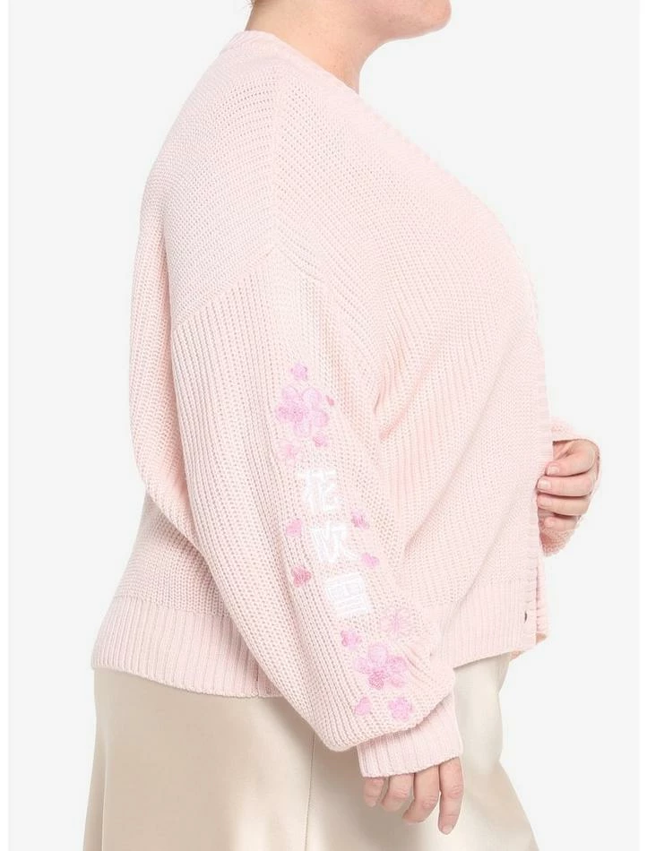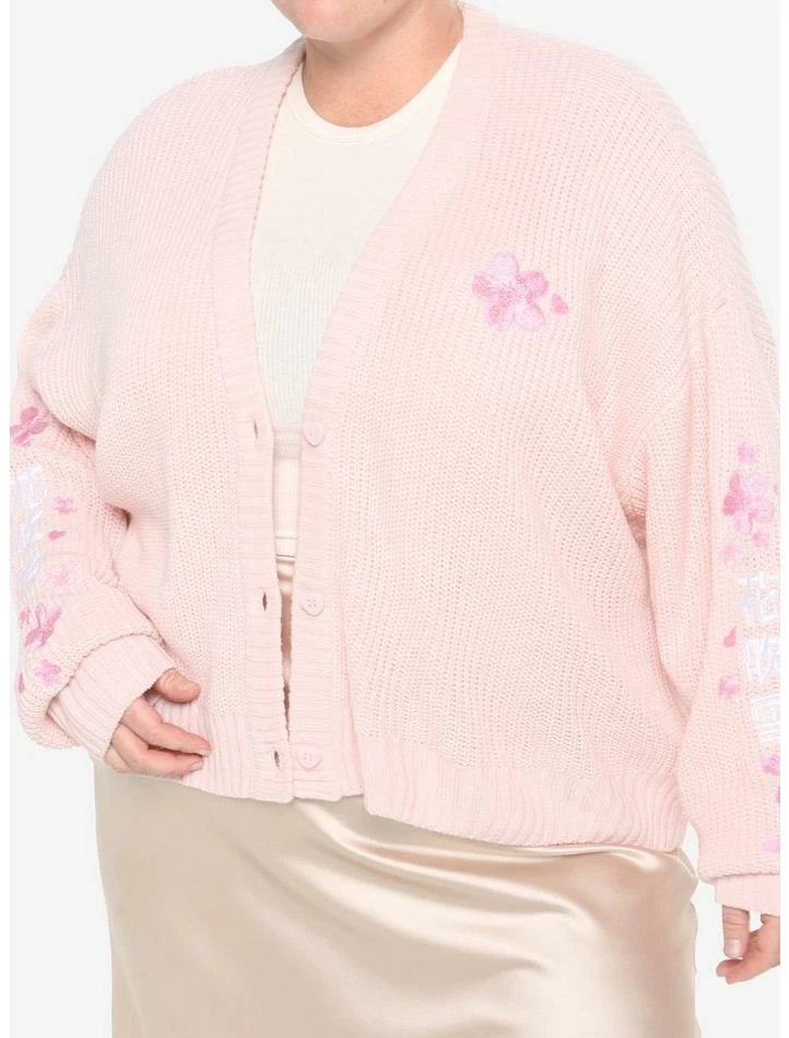 Your kawaii aesthetic will always be blooming in this adorable, pink cardigan! It has an oversized, crop fit and features beautiful sakura blossoms embroidered at the chest and down both sleeves, plus Japanese text. Complete with dainty, heart-shaped buttons.